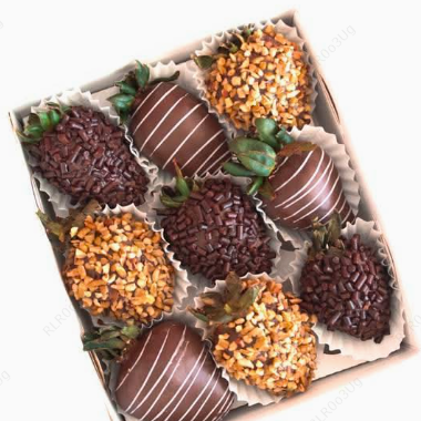 6 Piezas de Fresas con chocolate con mix de toppings y chocolate normal