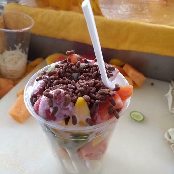 Cóctel de frutas frescas bañadas en nuestra deliciosa crema especial de la casa. Incluye un topping a elegir. Vaso de 16 oz