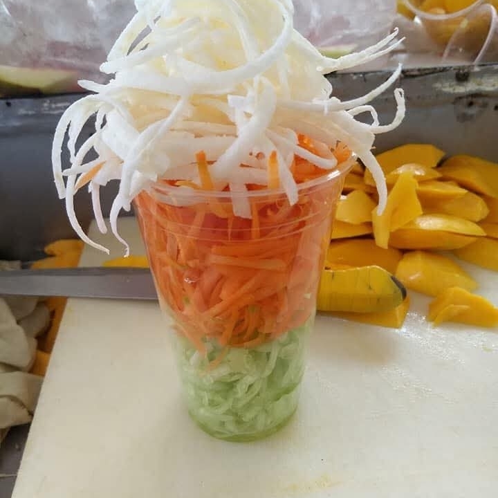 Jicama, Zanahoria y Pepino. Coronado con sal, chile, chamoy y limón.