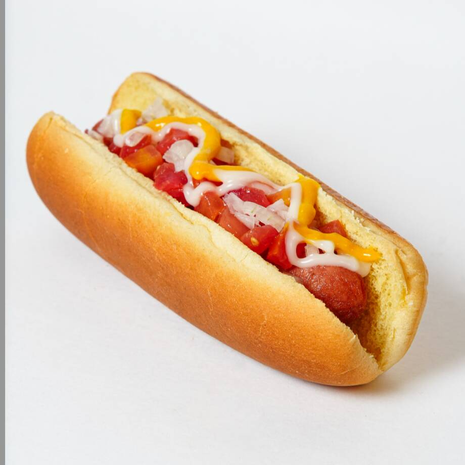 Pan de hotdog, salchicha de pavo y tocino