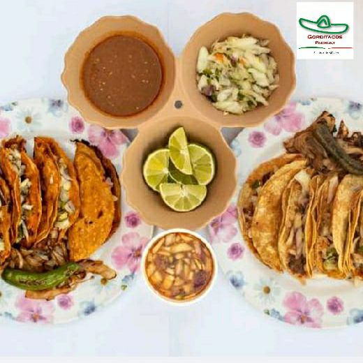 2 Tortillas mediana de maiz con carne de pastor y queso mozzarella, acompañado de verdura y salsa.