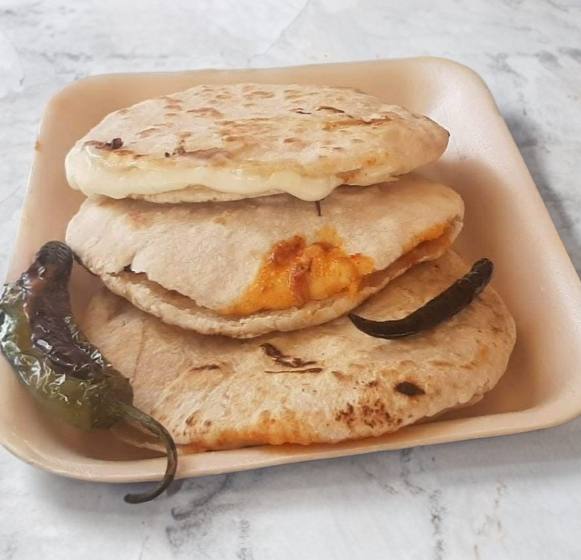 Deliciosa gordita de harina recién hecha rellena de tu comida favorita