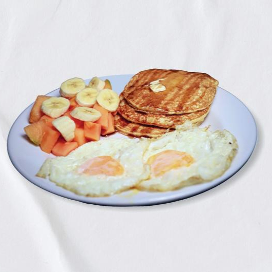 Desayuno 4 Hot Cakes, Huevos y Fruta