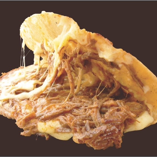 Bolillo calientito con queso fundido y tu guisado favorito.