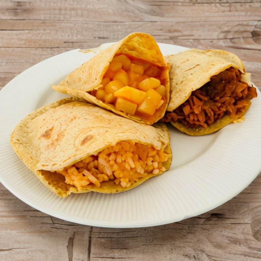 Deliciosa quesadilla de tortilla de maíz y hasta dos guisados caseros premium