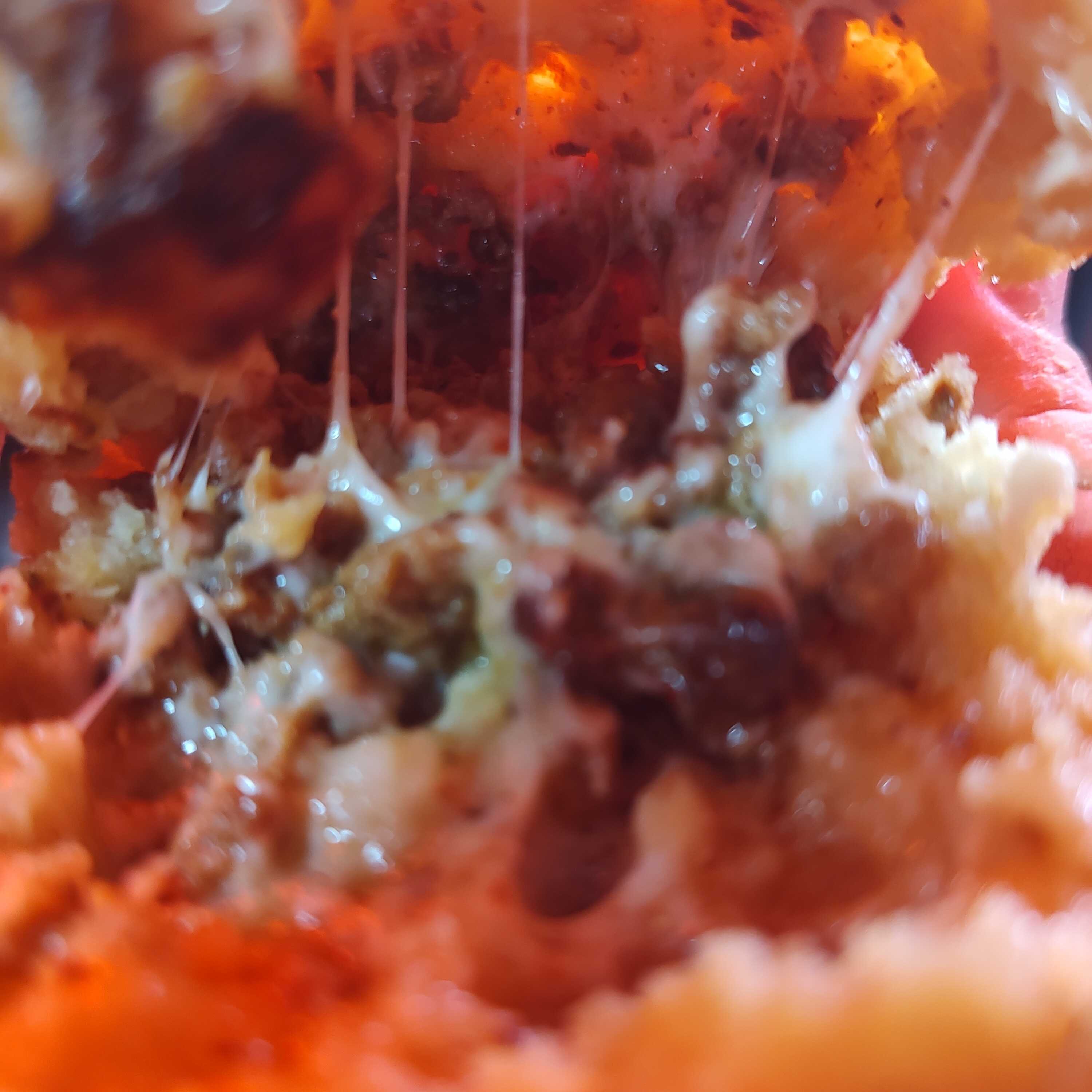 Con tocino ,pimiento morrón y cebolla