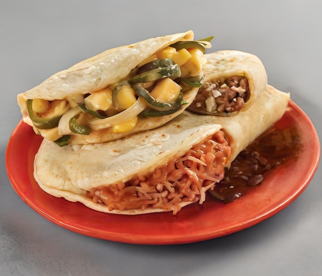 Exquisita quesadilla dorada rellena de queso y 1 guisado de su elección, coronada con lechuga, crema y queso.