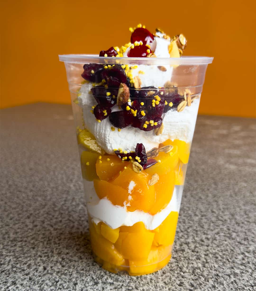 Deliciosos Duraznos acompañado de crema, coronados con 1 topping a tu elección.