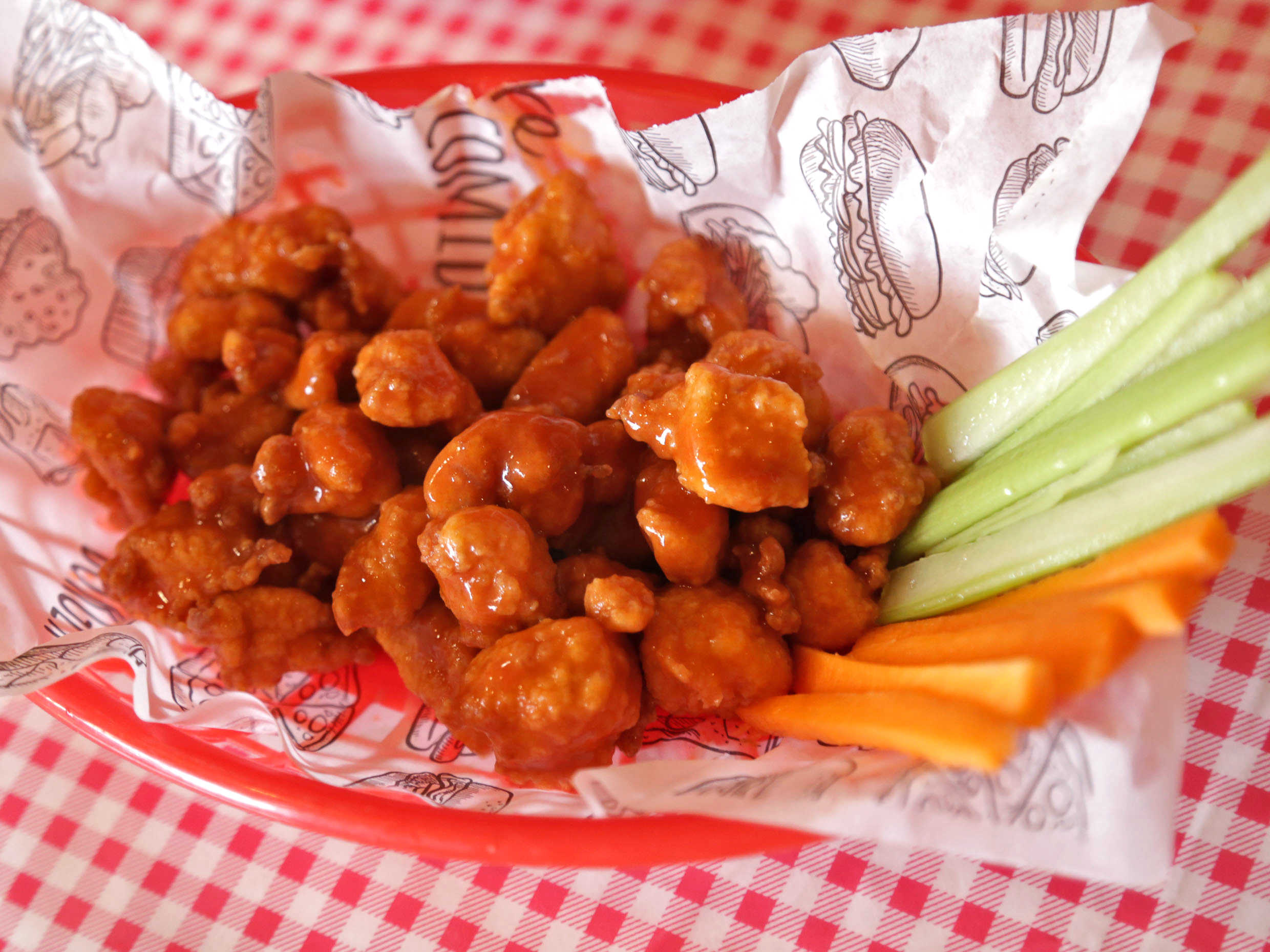 Harinada frita con salsa búfalo.