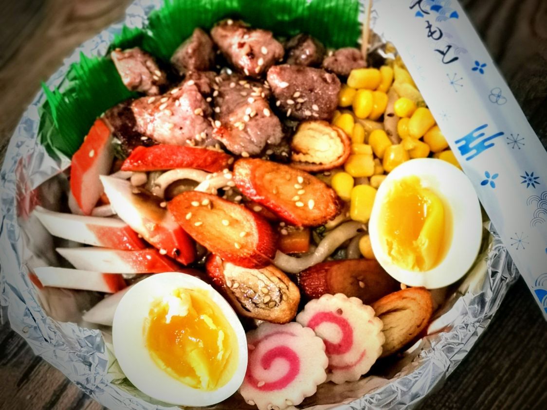 PASTA, HUEVO COCIDO, ALGA, VERDURAS, AJONJOLI,