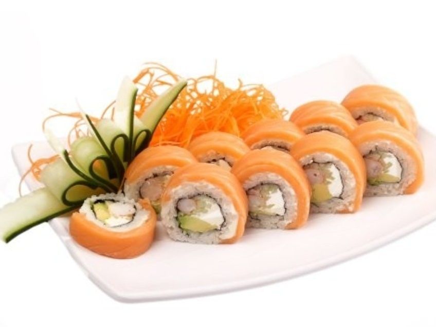 FUERA QUESO PHILADELPHIA DENTRO SALMON, PEPINO Y AGUACATE