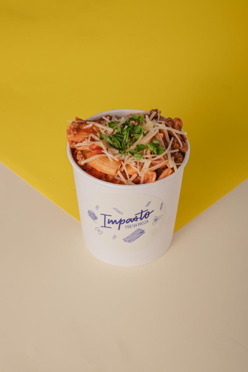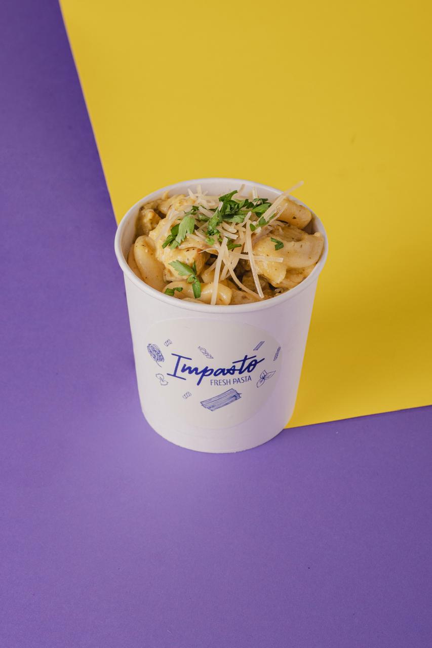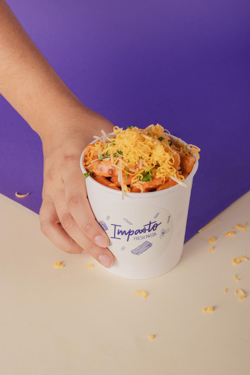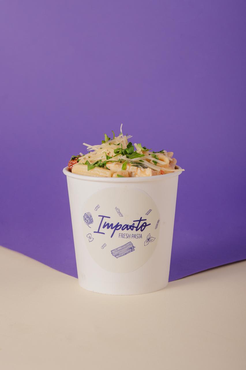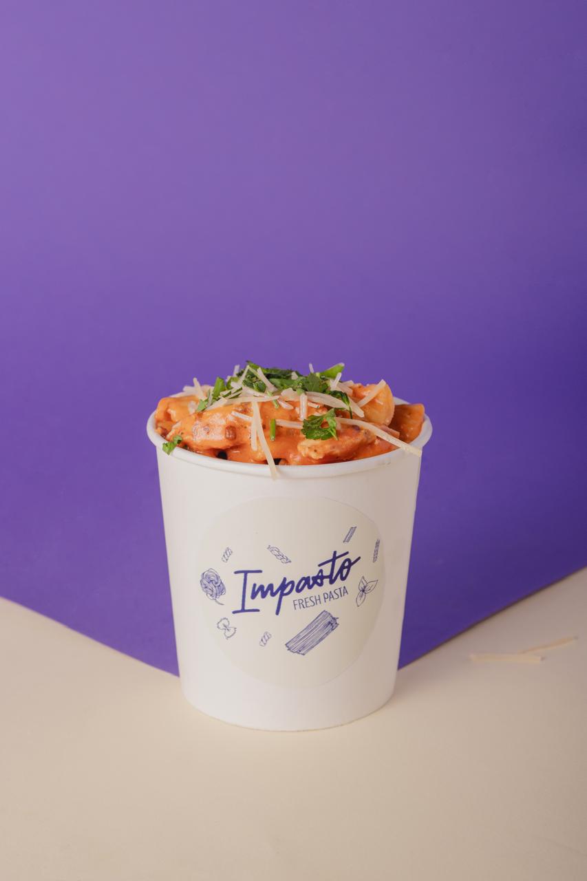 Salsa rosse con chipotle, queso cheddar, parmesano y pollo.
