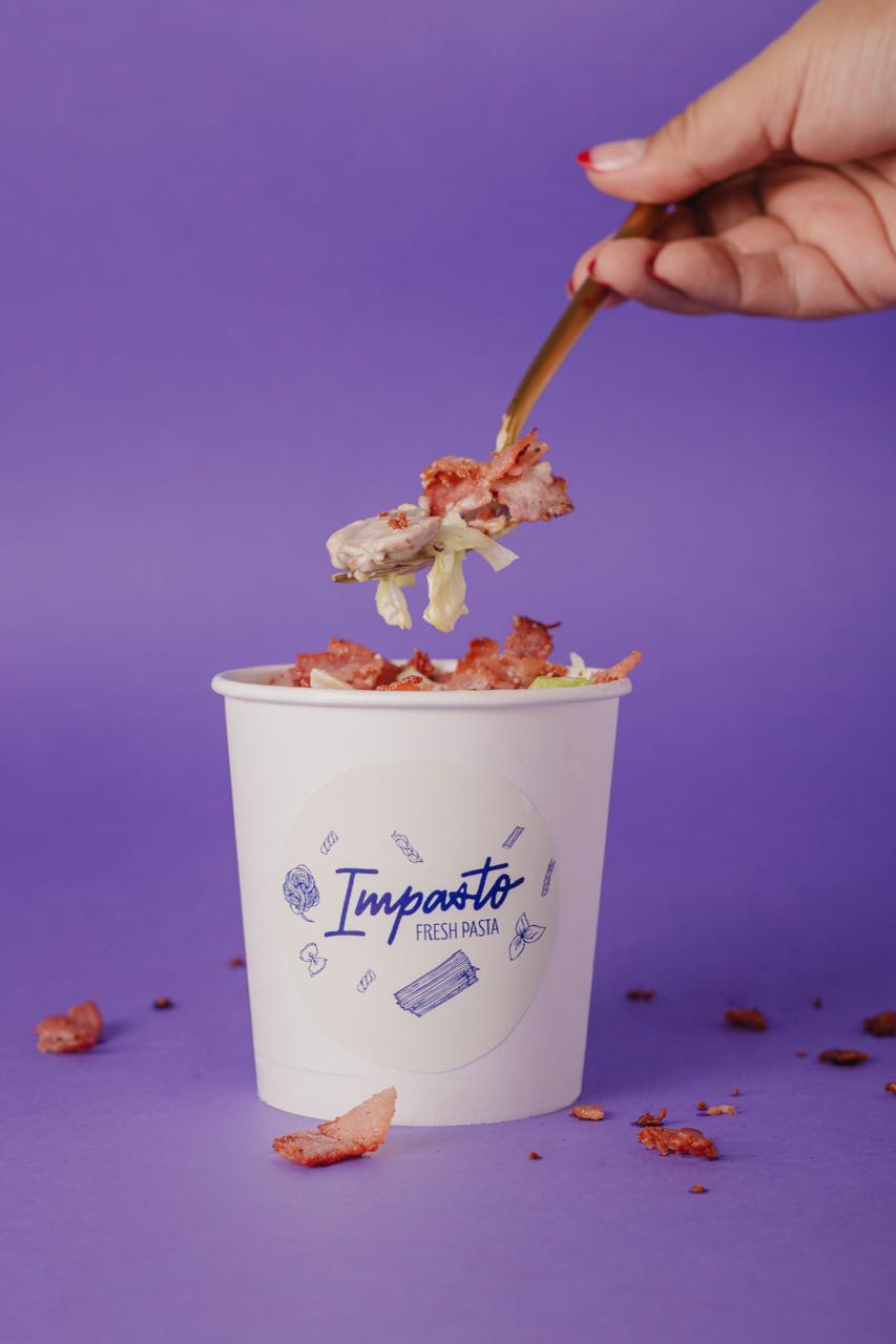Salsa Blanca acompañada de tocino y cebolla caramelizada.