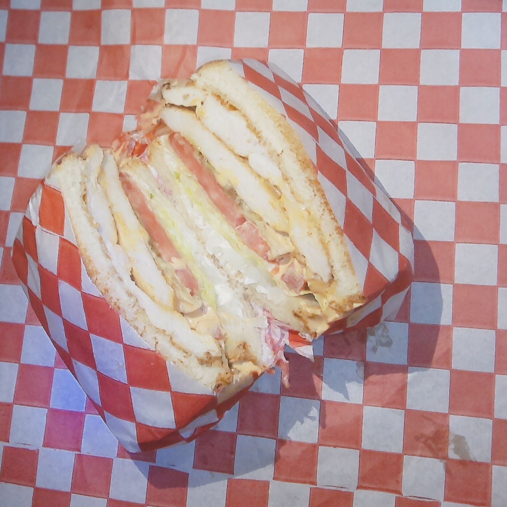 Pollo ala plancha o empanizado, tocino, mayonesa, letchuga, jitomate, cebolla, aguacate, pepinillos y aderezo especial de la casa