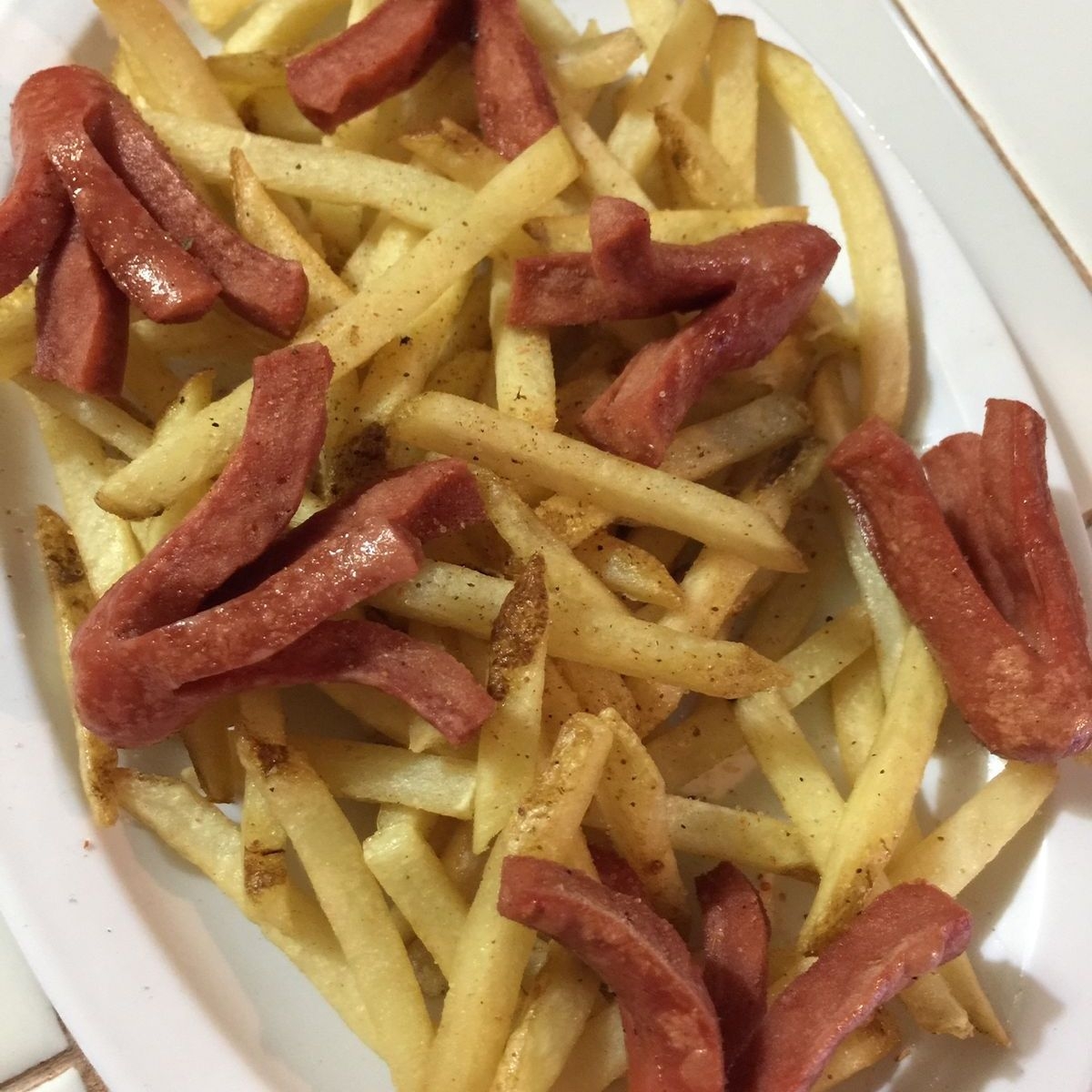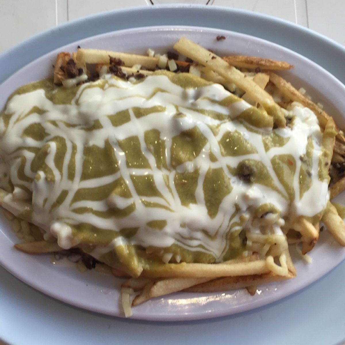 Papas a la francesa,frijol,carne,queso asadero derretido, guacamole y crema
