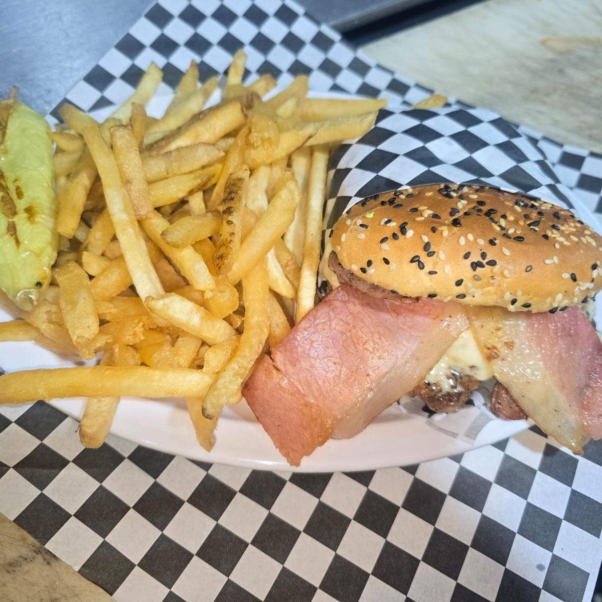 Hamburguesa Doble Carne Doble Tocino con Papas