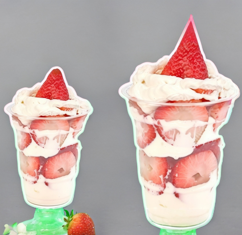 Fresas bañadas con crema especial, 1 cereal a elegir y topping especial. Vaso de 7 oz