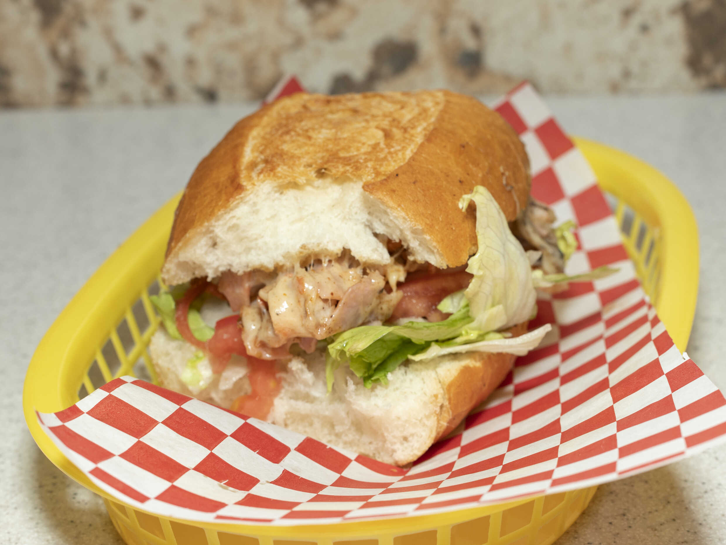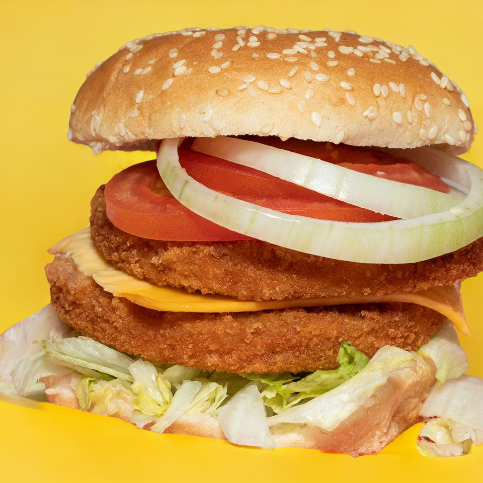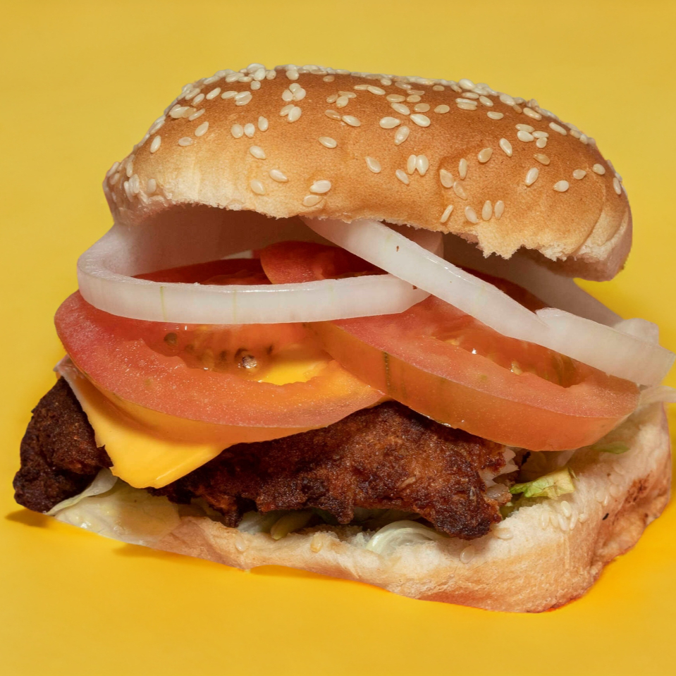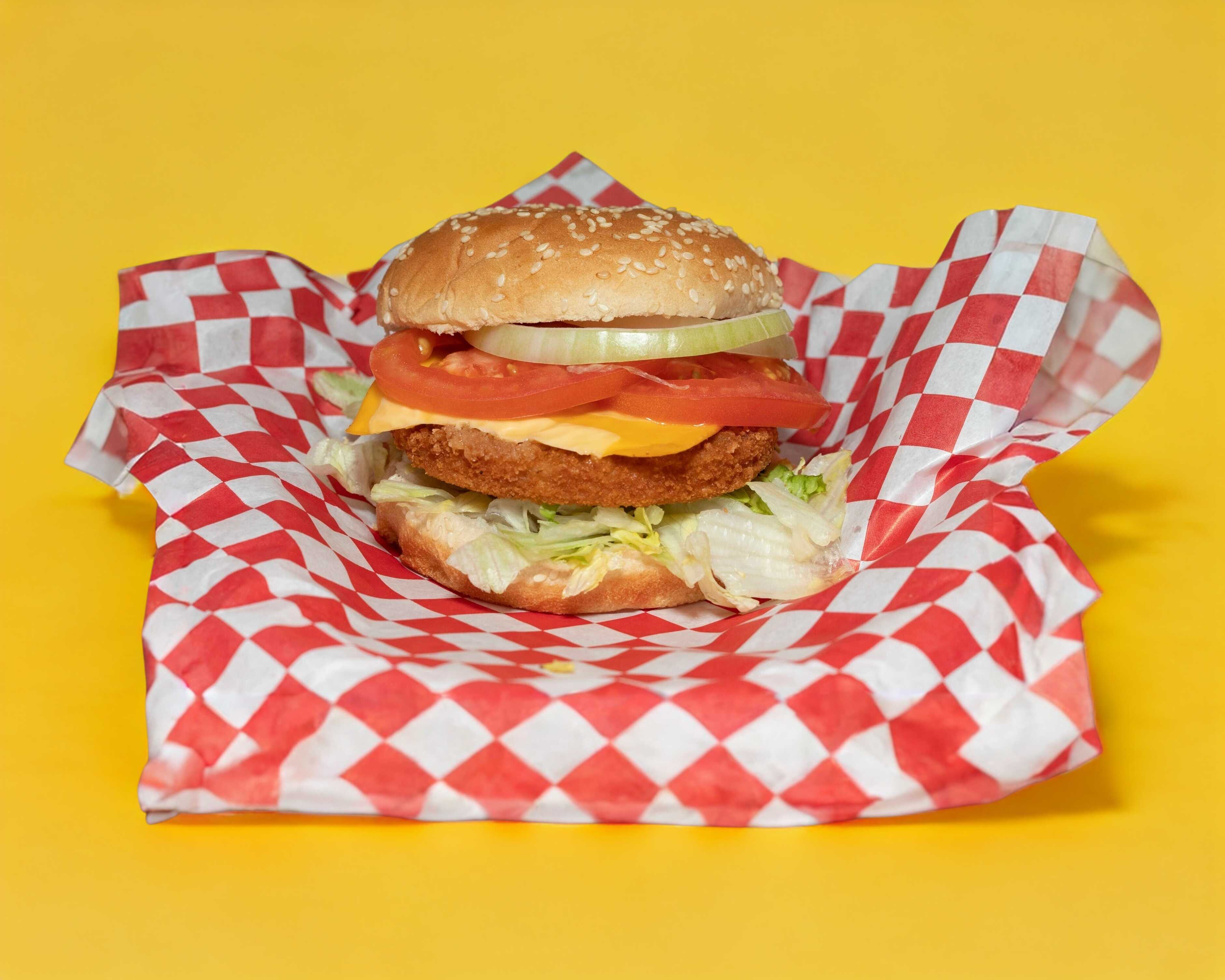 Hamburguesa con pollo y queso.