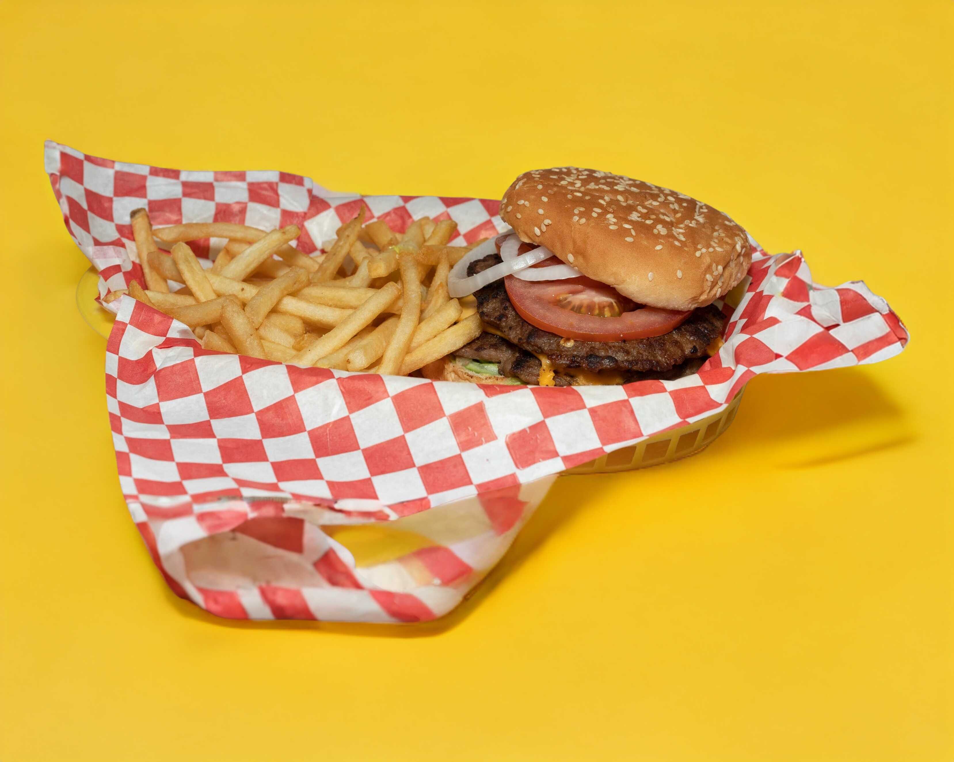Hamburguesa Doble Sencilla con Queso + Papas a La Francesas Sencillas + Coca cola.