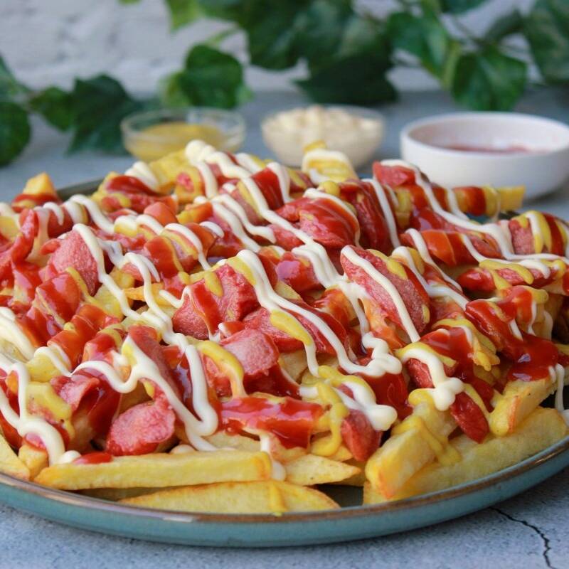 Mayonesa, jitomate, catsup, crema, mostaza tocino y salchicha