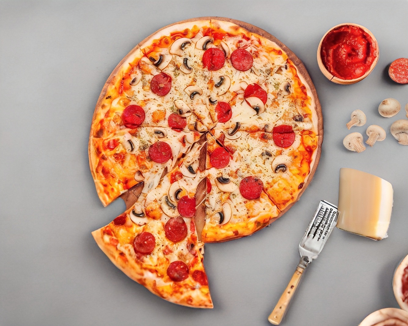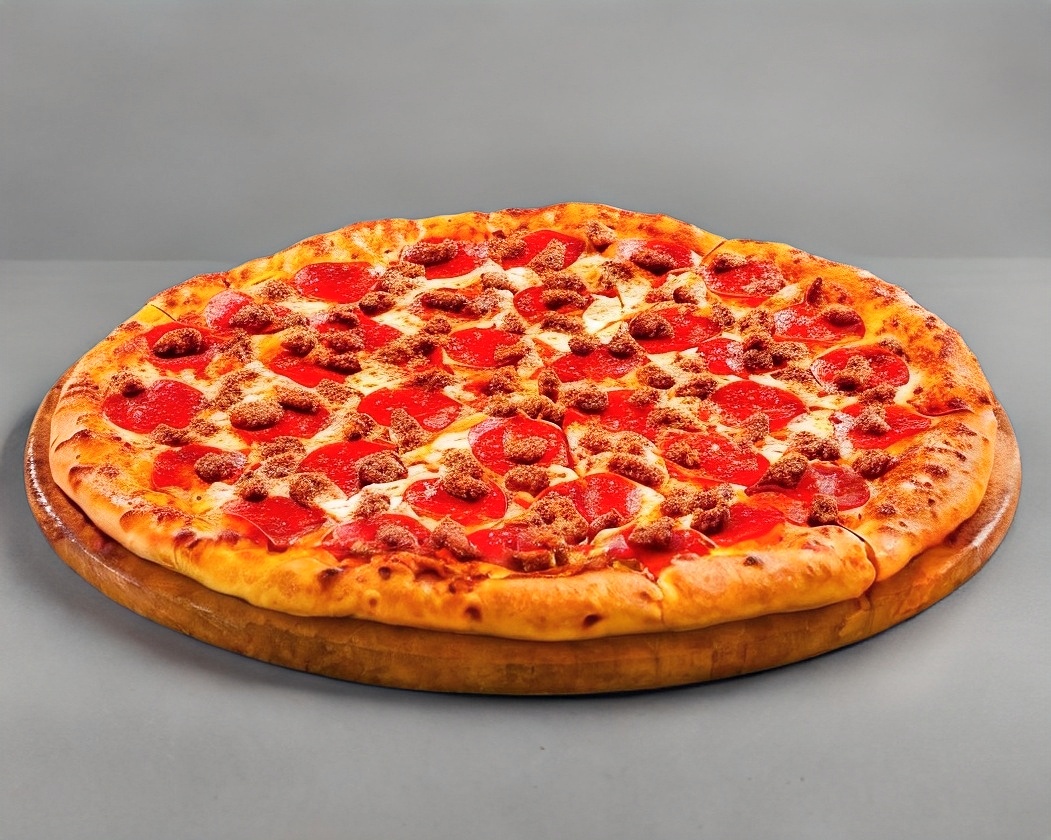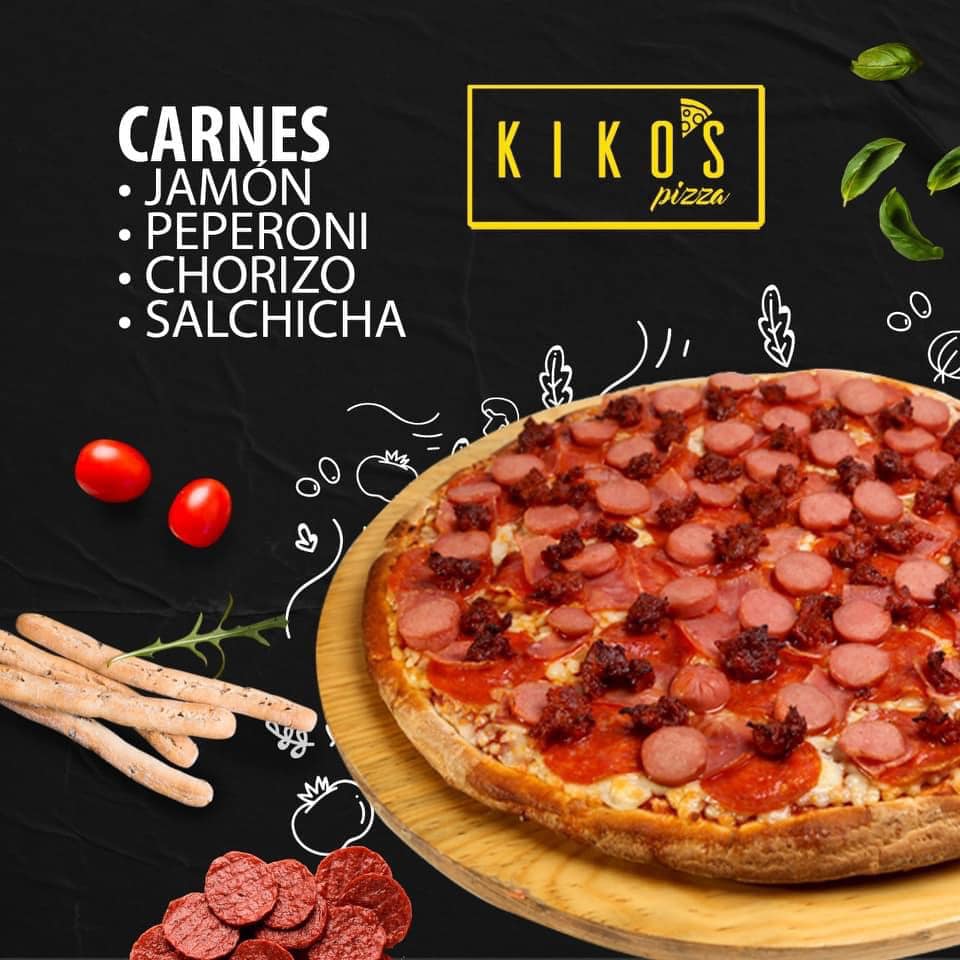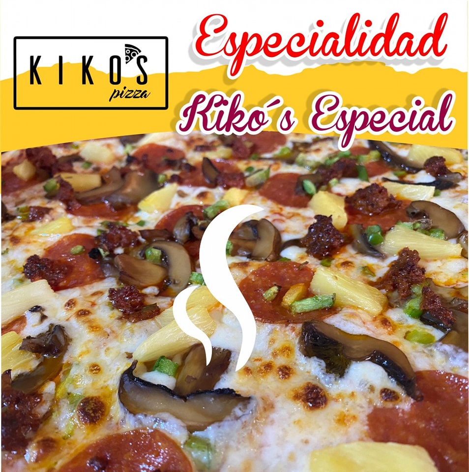 Pepperoni, champiñones, piña, pimiento verde y chorizo.