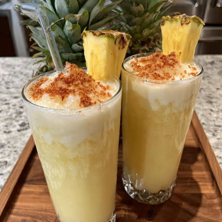 Piña, endulzante de cereza, crema de coco,leche,canela.