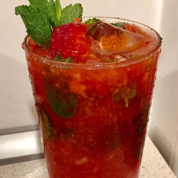 Frutos rojos refresco hielo jugo de limón hierbabuena endulzantes etc