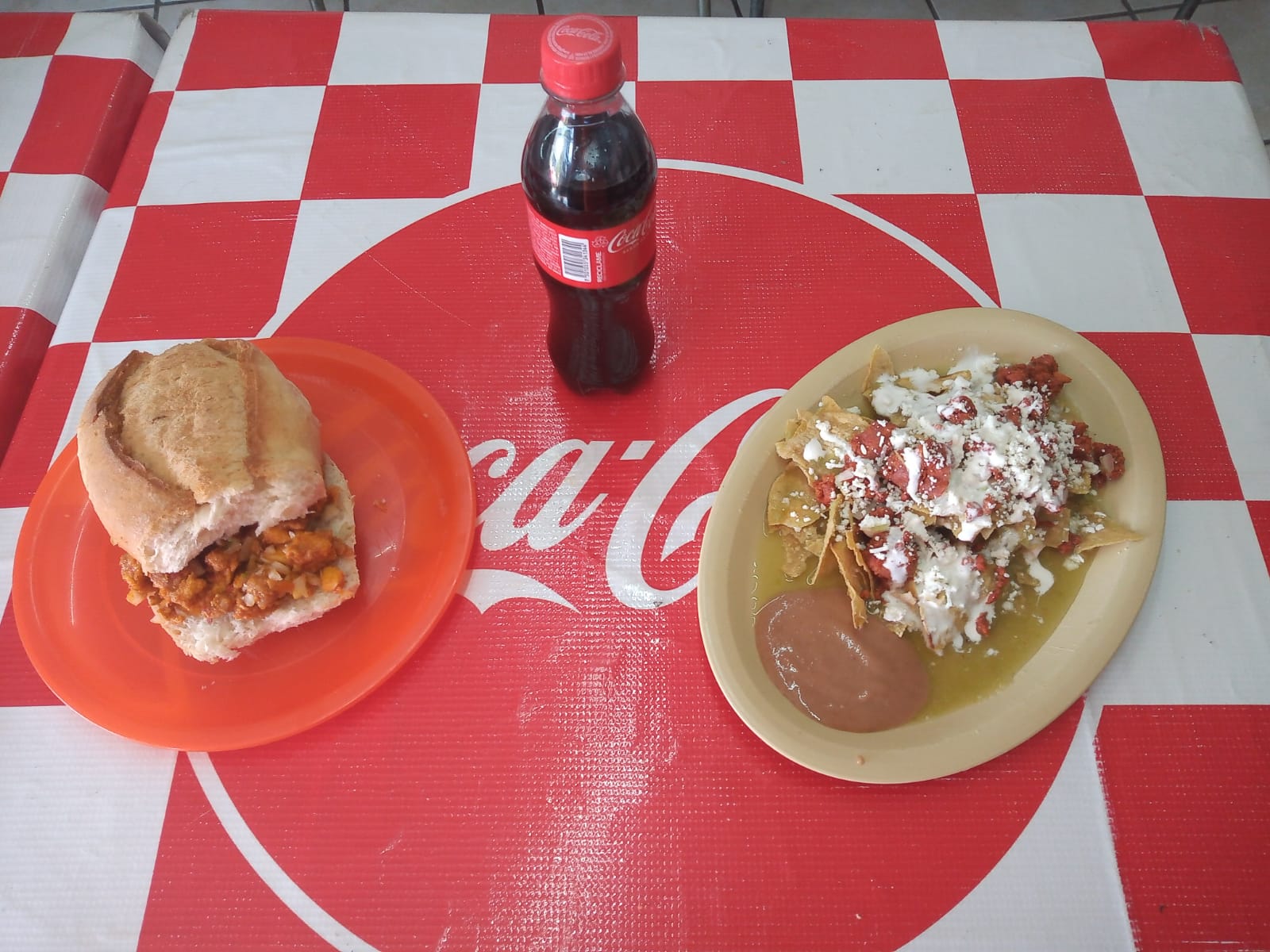 Deliciosa salsa de tomate verde, con tortillas doradas de la casa. Frijol, queso crema, cebolla y revanadas de bolillo