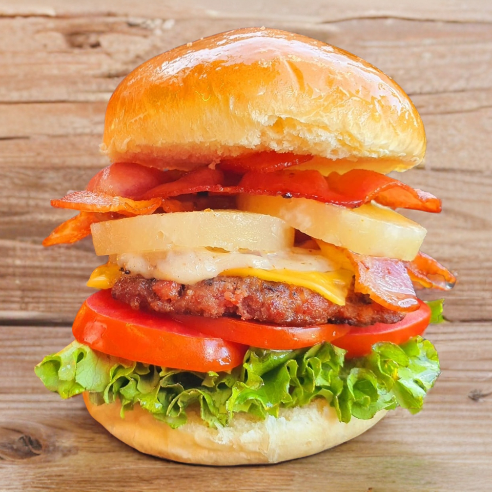 Hamburguesa Hawaiana con papas francesa