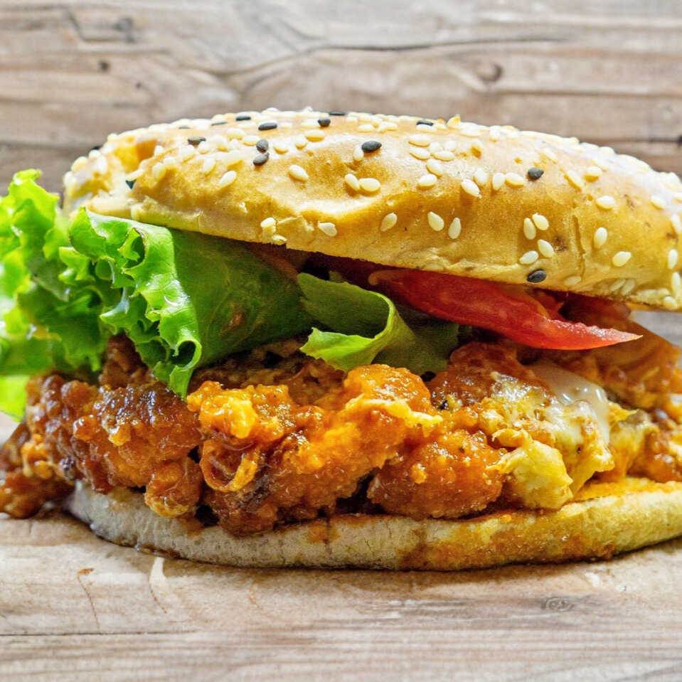 Hamburguesa Pollo Loco con papas francesa