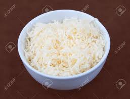Grano de elote con mayonesa, queso blanco y queso amarillo.