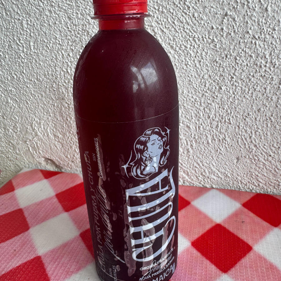 Bolillo grande, Adobada, aderezos, jitomate, cebolla y lechuga.