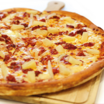 PIZZA CARNE PASTOR, PÍÑA, CEBOLLA Y TOCINO
