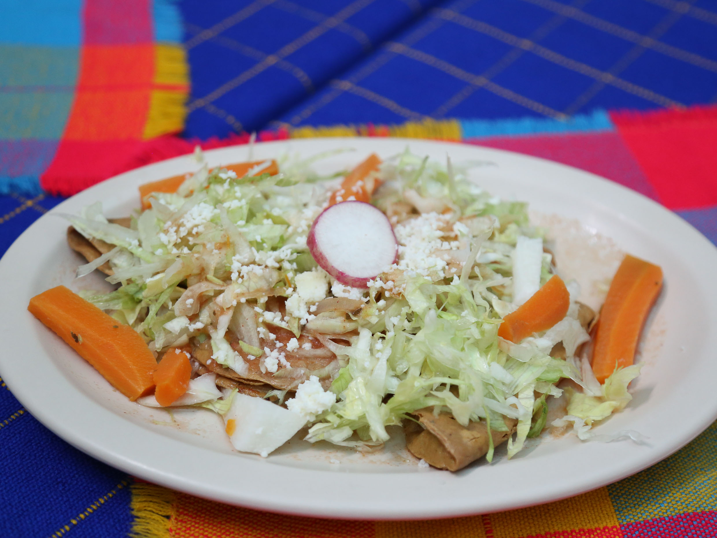 Orden 3 pzas. con frijoles, carne deshebrada, queso, lechuga, 1 con pico de gallo , 1 con crema, 1 con guacamole.