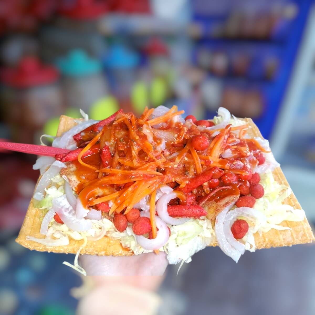 Lechuga, Zanahoria Encurtida, Cueritos, Takis Fuego, Cacahuates Hot Nut, Limón, Crema y Salsa de tu Preferencia.