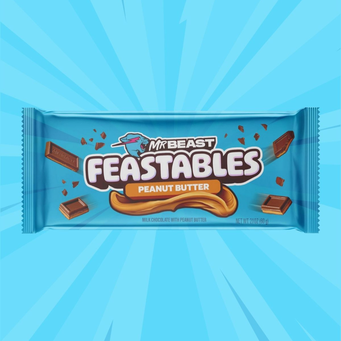 Chocolate de Mr. Beast Feastables Sabor Crema de Cacahuate 60 gm.