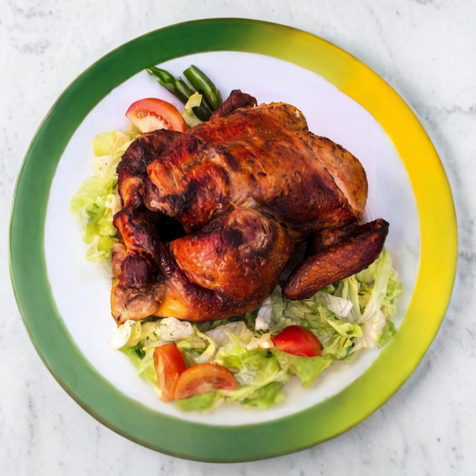 1 Pollo Rostizado a la Leña, Tamaño Mediano, Inluye Salsa Roja, Verde y Lechuga