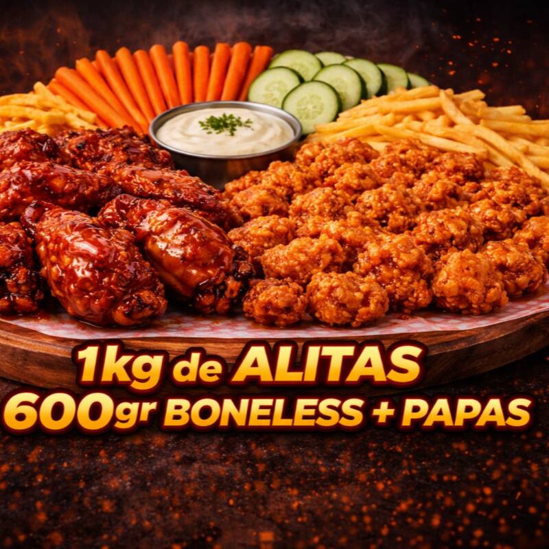 1 Kg Alitas + 600 Gr Boneless + Papas a la Francesa