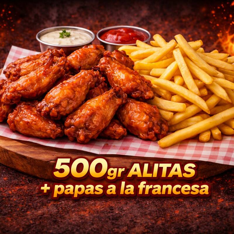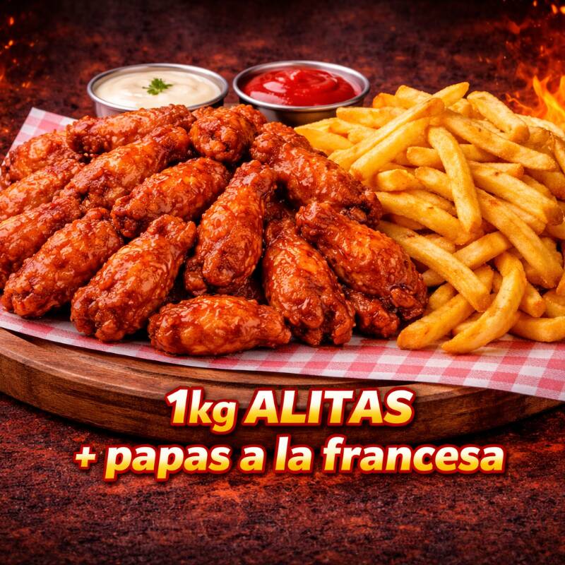 1 Kg de Alitas Con Papas a la Francesa