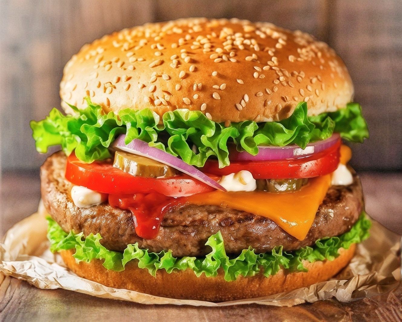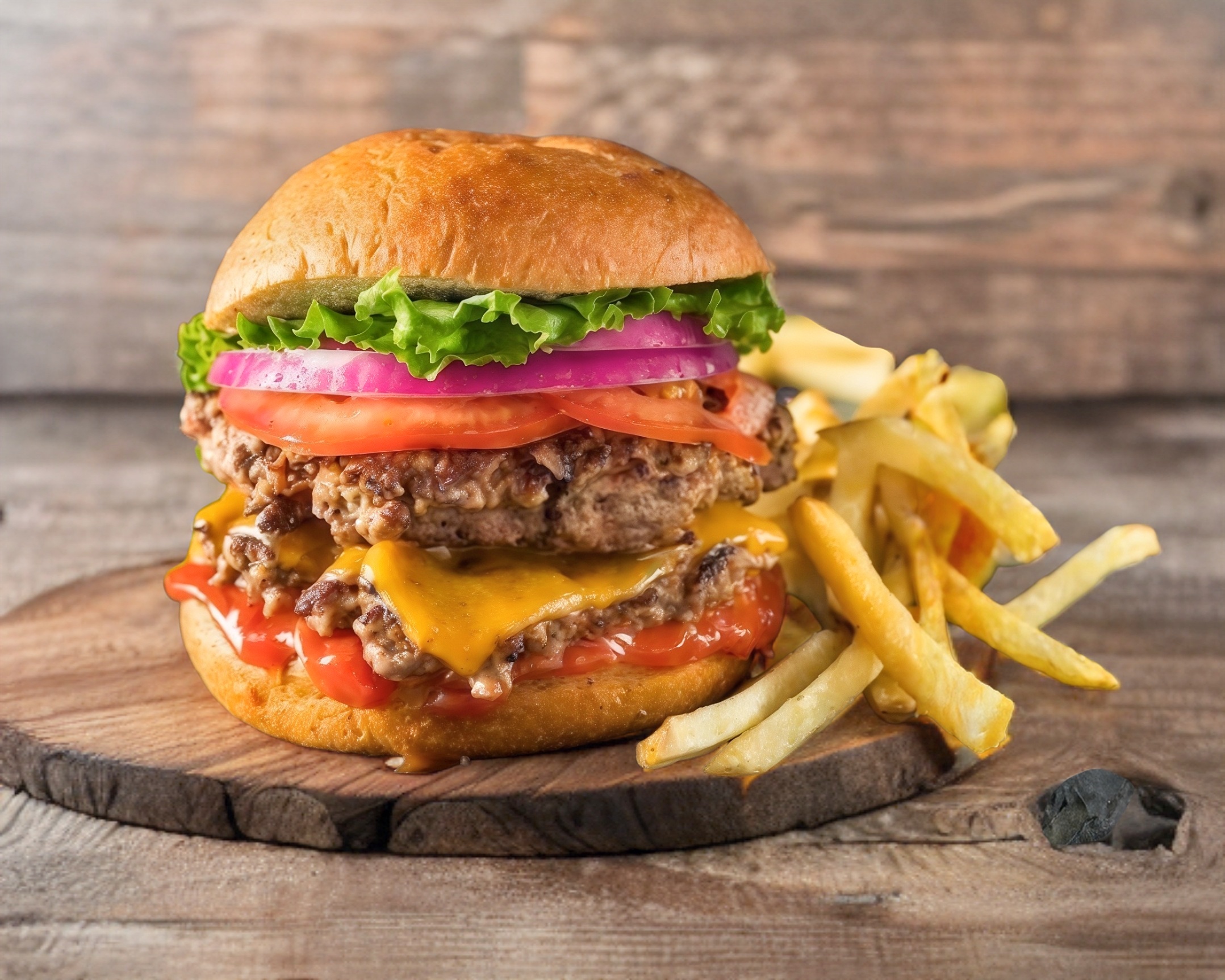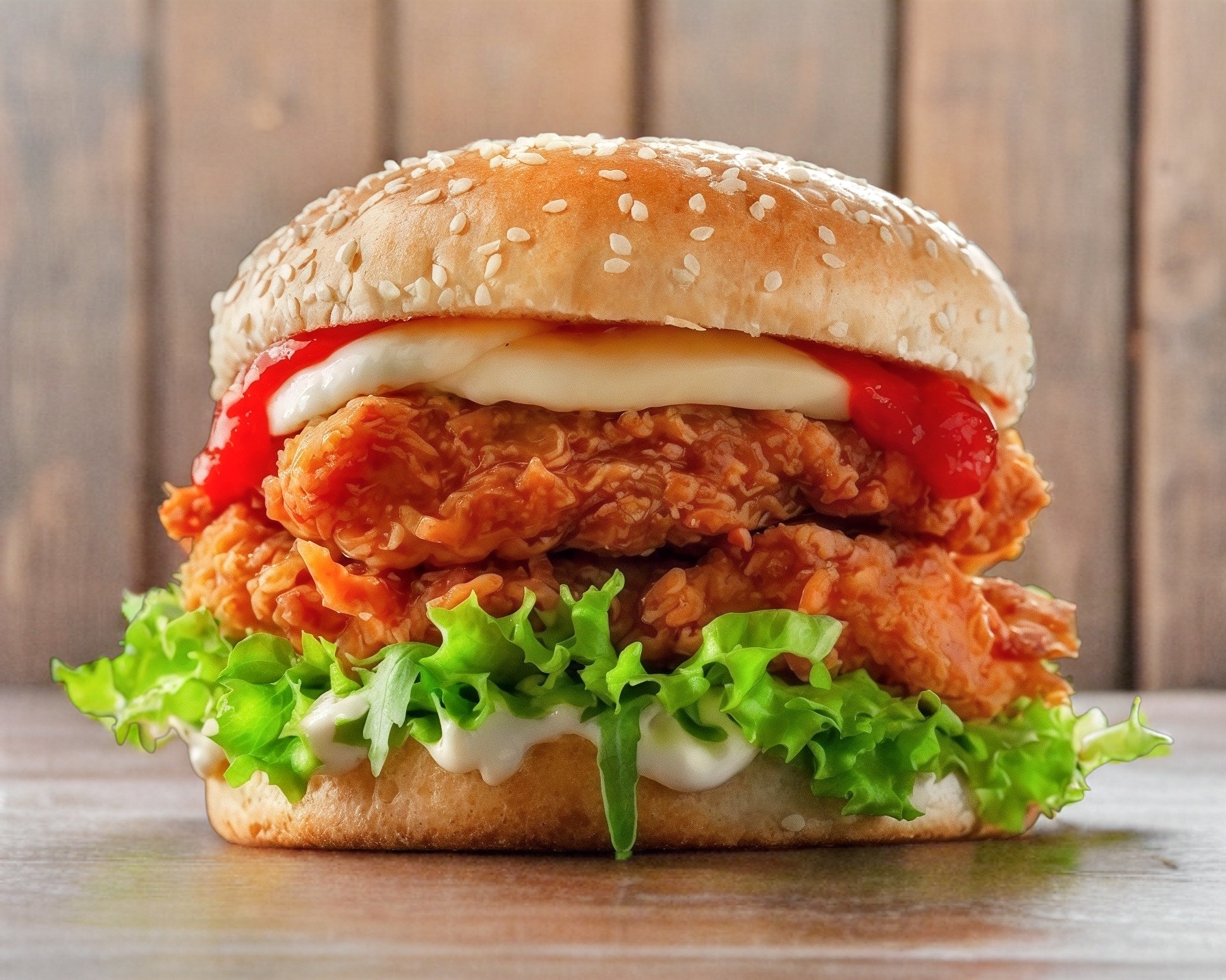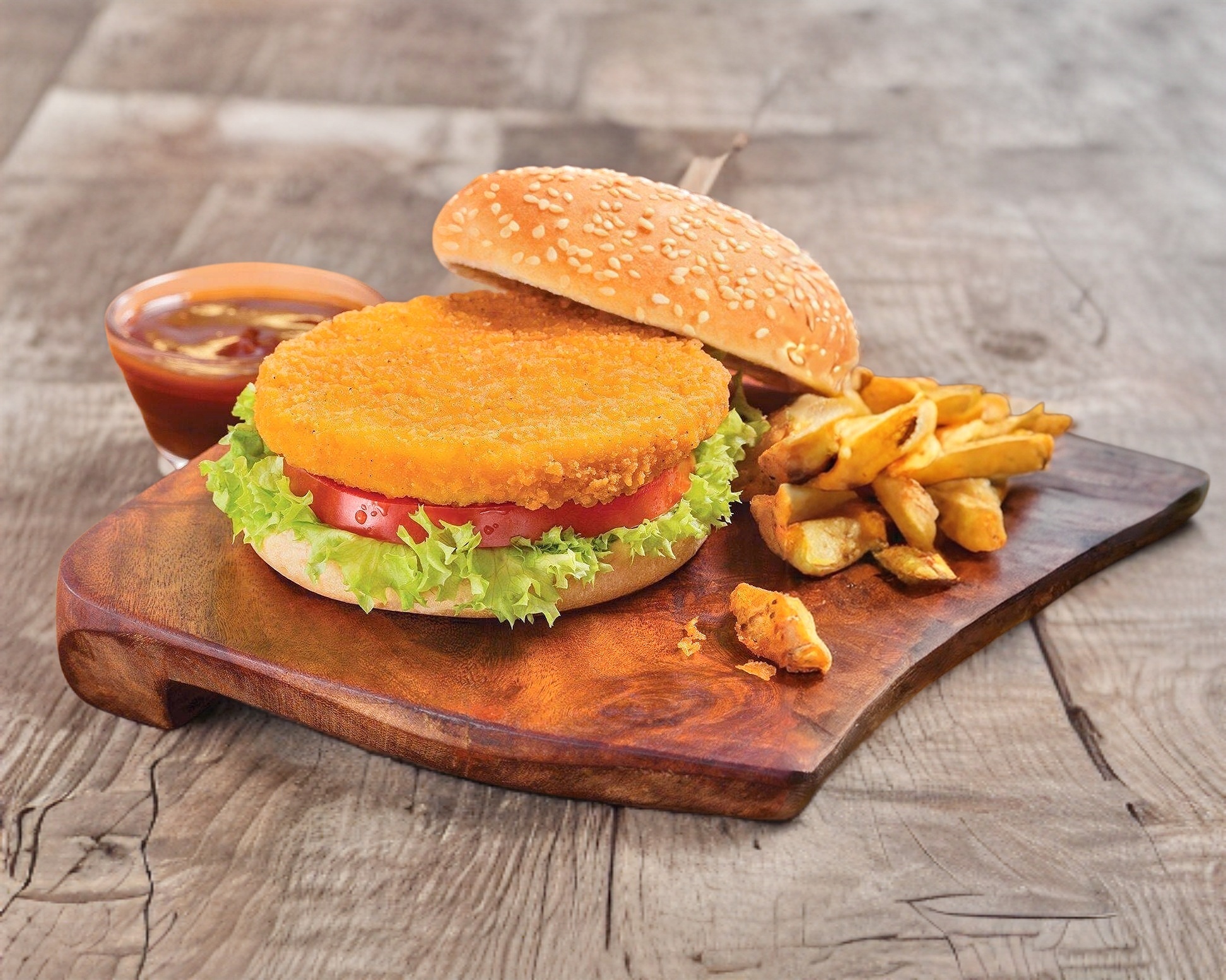 Burguer de Boneless con pan tradicional, queso Amarillo , lechuga, jitomate, cebolla.