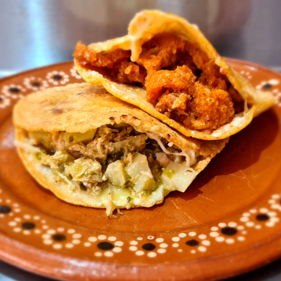 Deliciosas gorditas de comal con queso fundido con tus guisados favoritos.