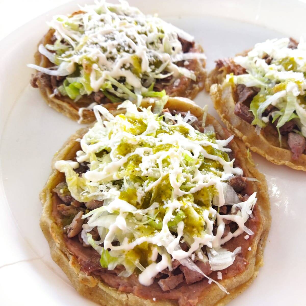 Delicioso sope de masa, acompañado de res, lechuga,crema y queso.