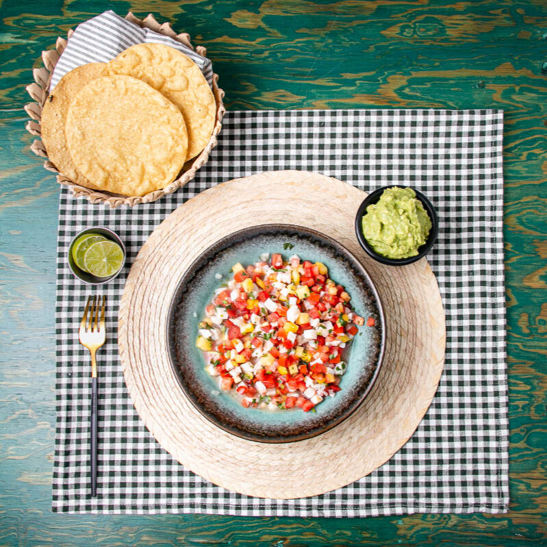 Ceviche de pescado blanco con jitomate, cebolla cilantro y limón.