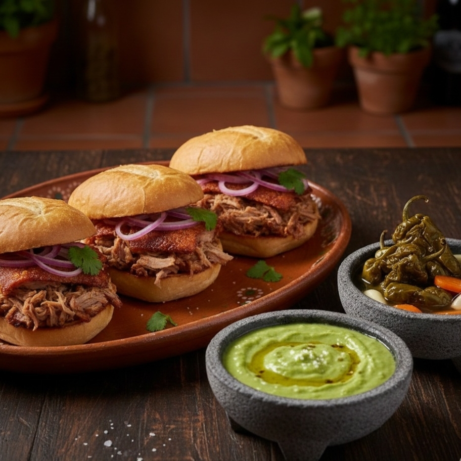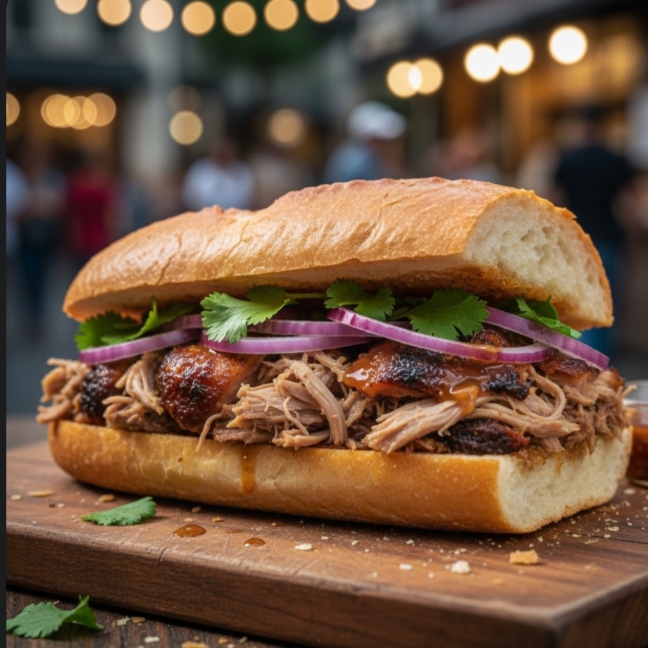 Crujiente bolillo relleno de nuestro suave lechón artesanal, preparado con el toque auténtico de Los Joaquines.