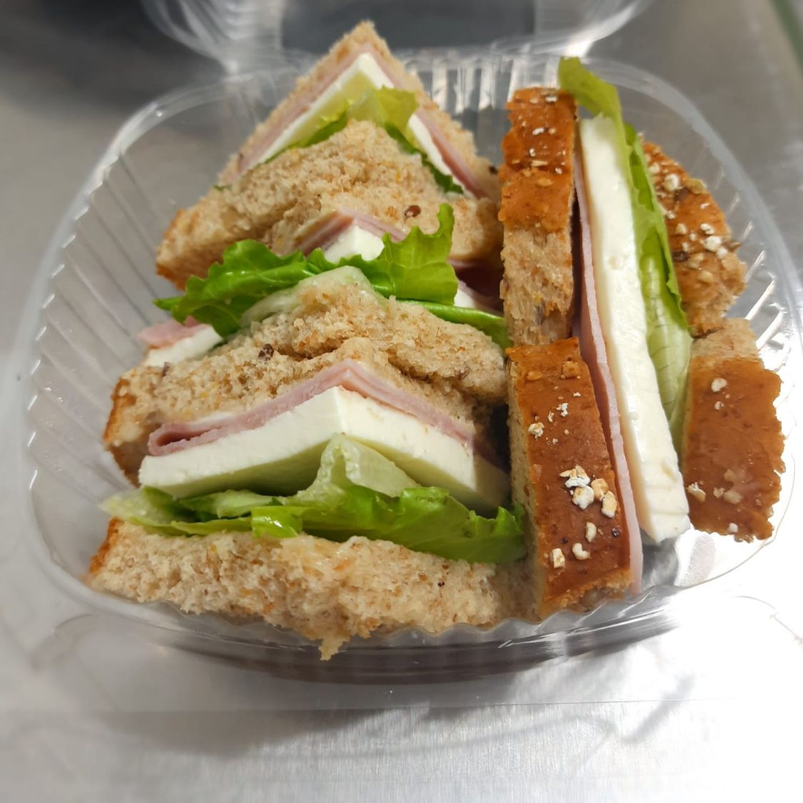 Pan con granos enteros y un toque de miel, jamón de pierna premium, queso panela, lechuga y aderezo.