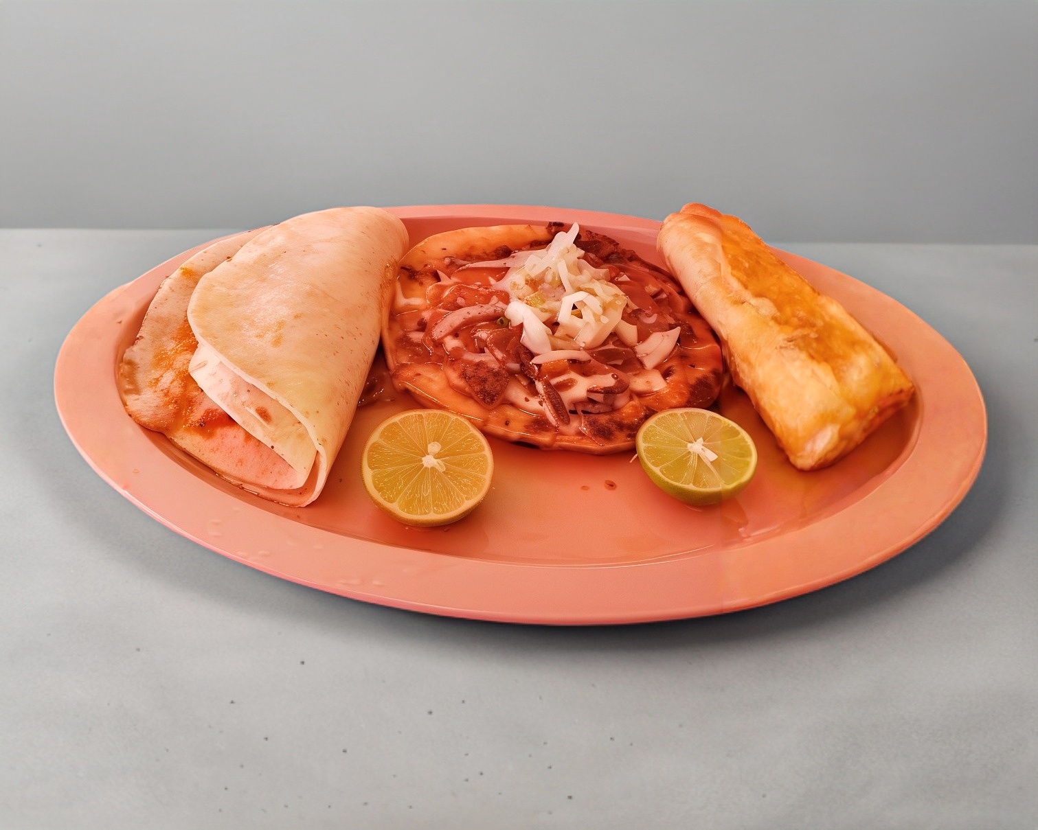 Doble tortilla de maíz dorada rellena de queso y barbacoa de res exquisitamente sazonada con nuestro famosísimo estilo jalisco. Incluye consomé, verduras y salsas.