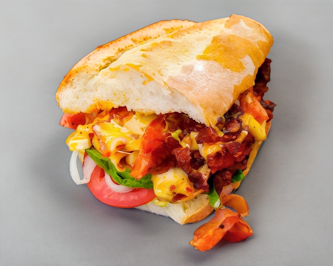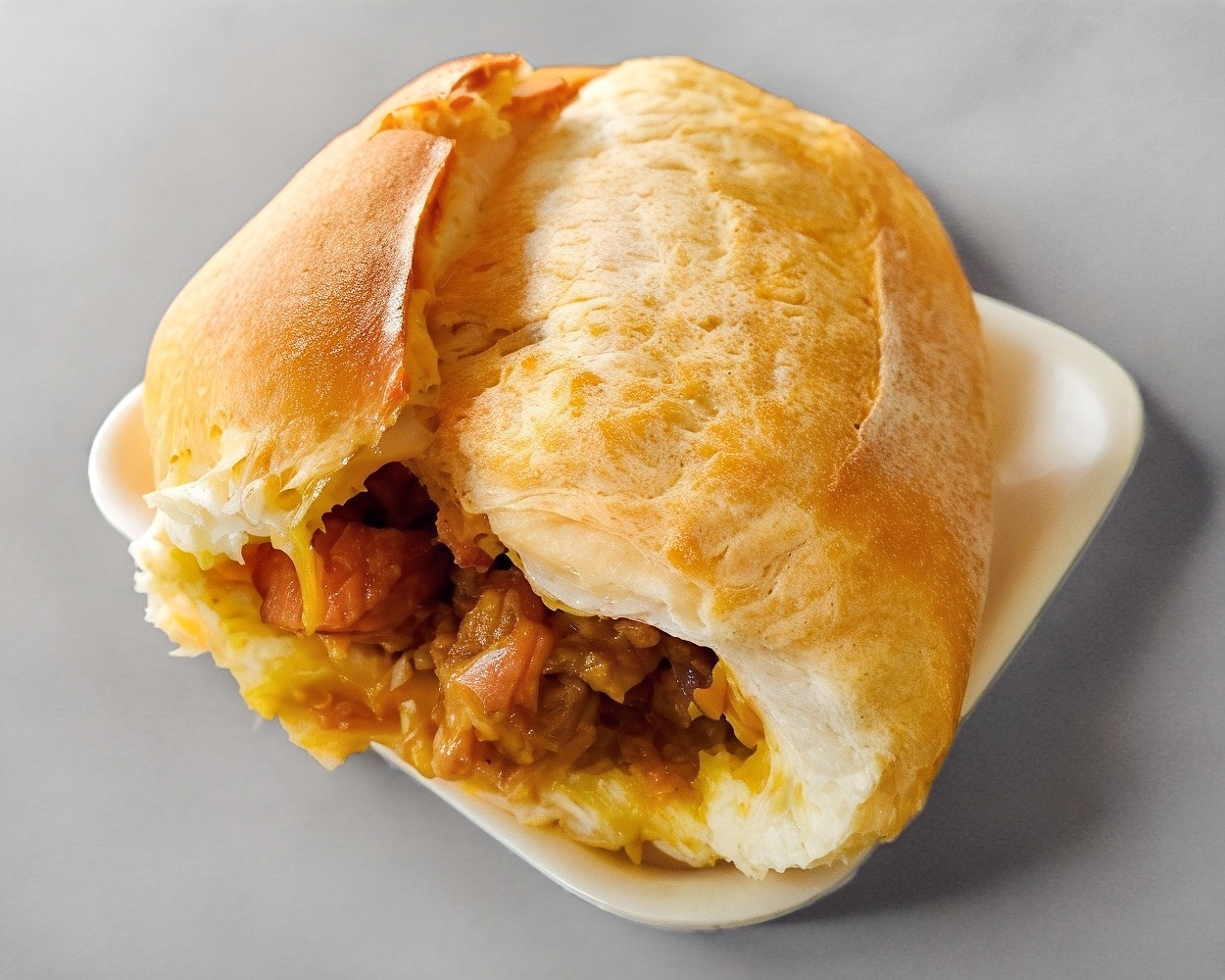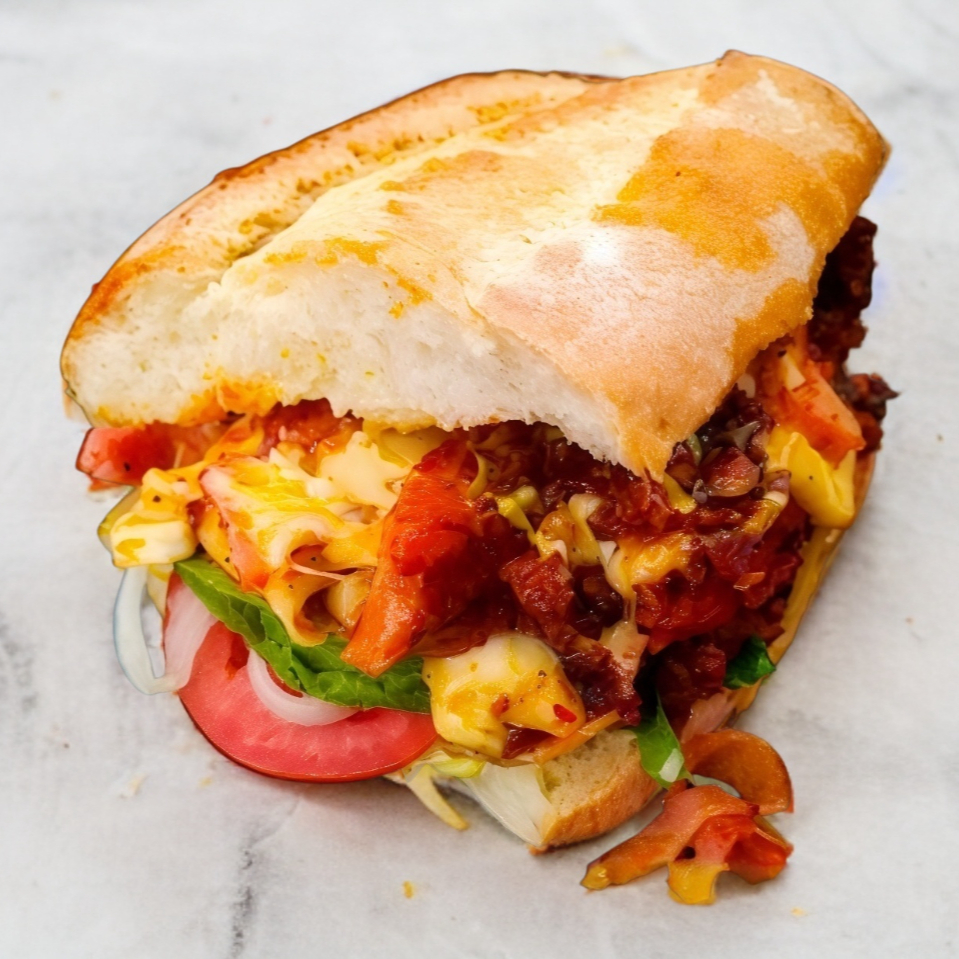 Adobada, mayonesa, mostaza, jitomate, cebolla, chile jalapeño, queso fresco, aguacate.
