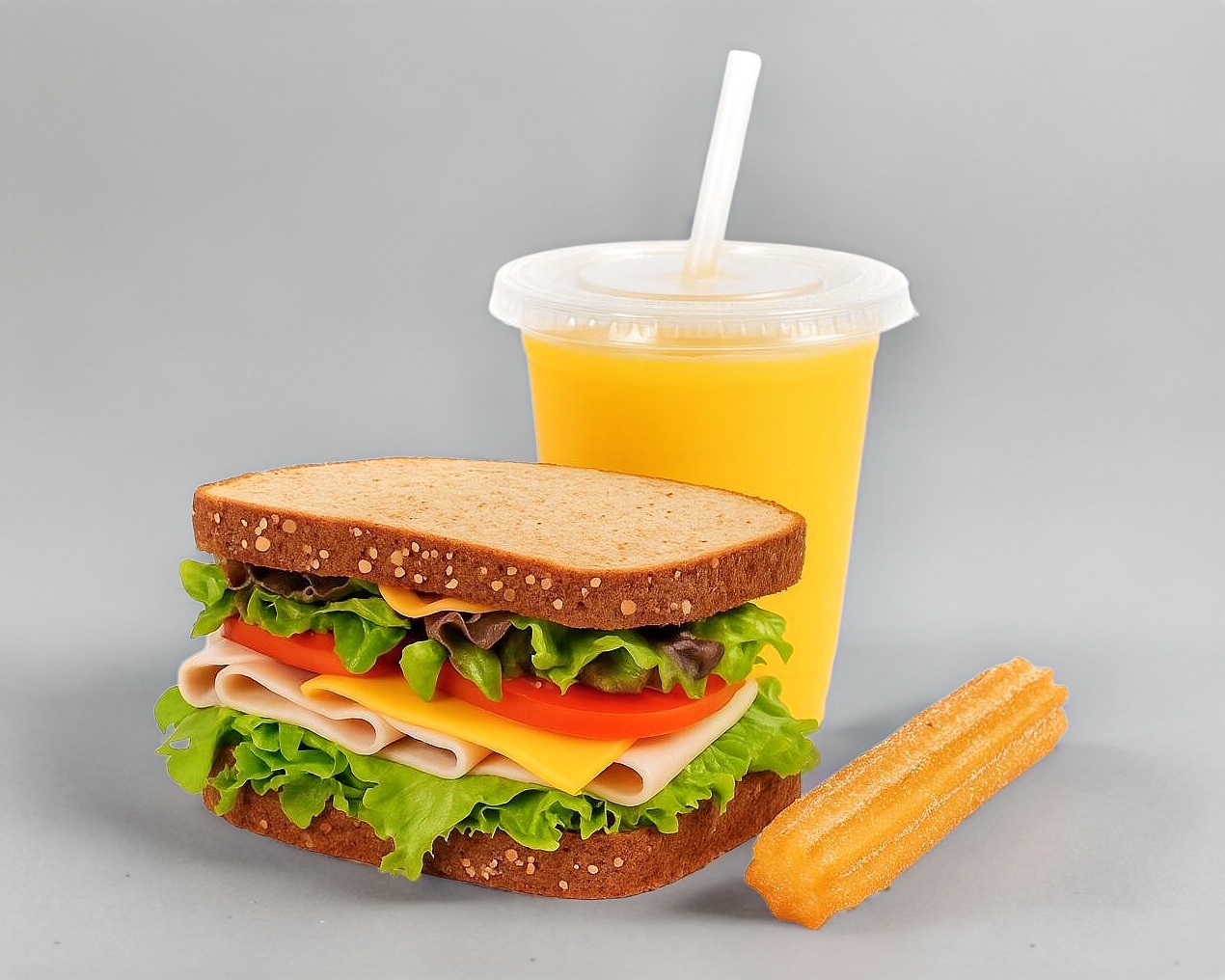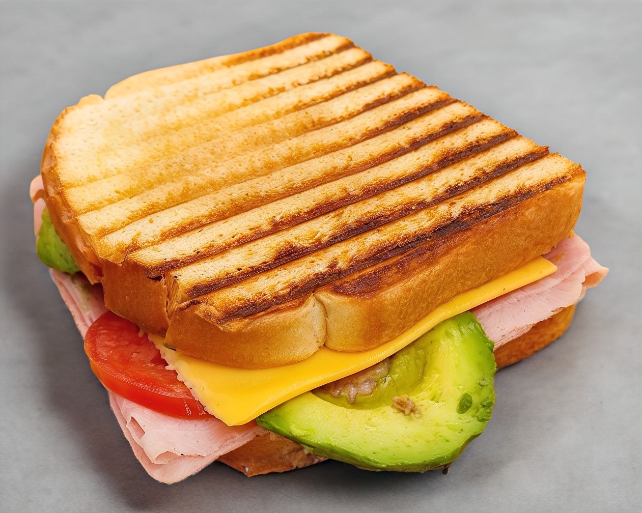 Jamón, mostaza, mayonesa, queso, jitomate, cebolla, lechuga, chile jalapeño, aguacate.