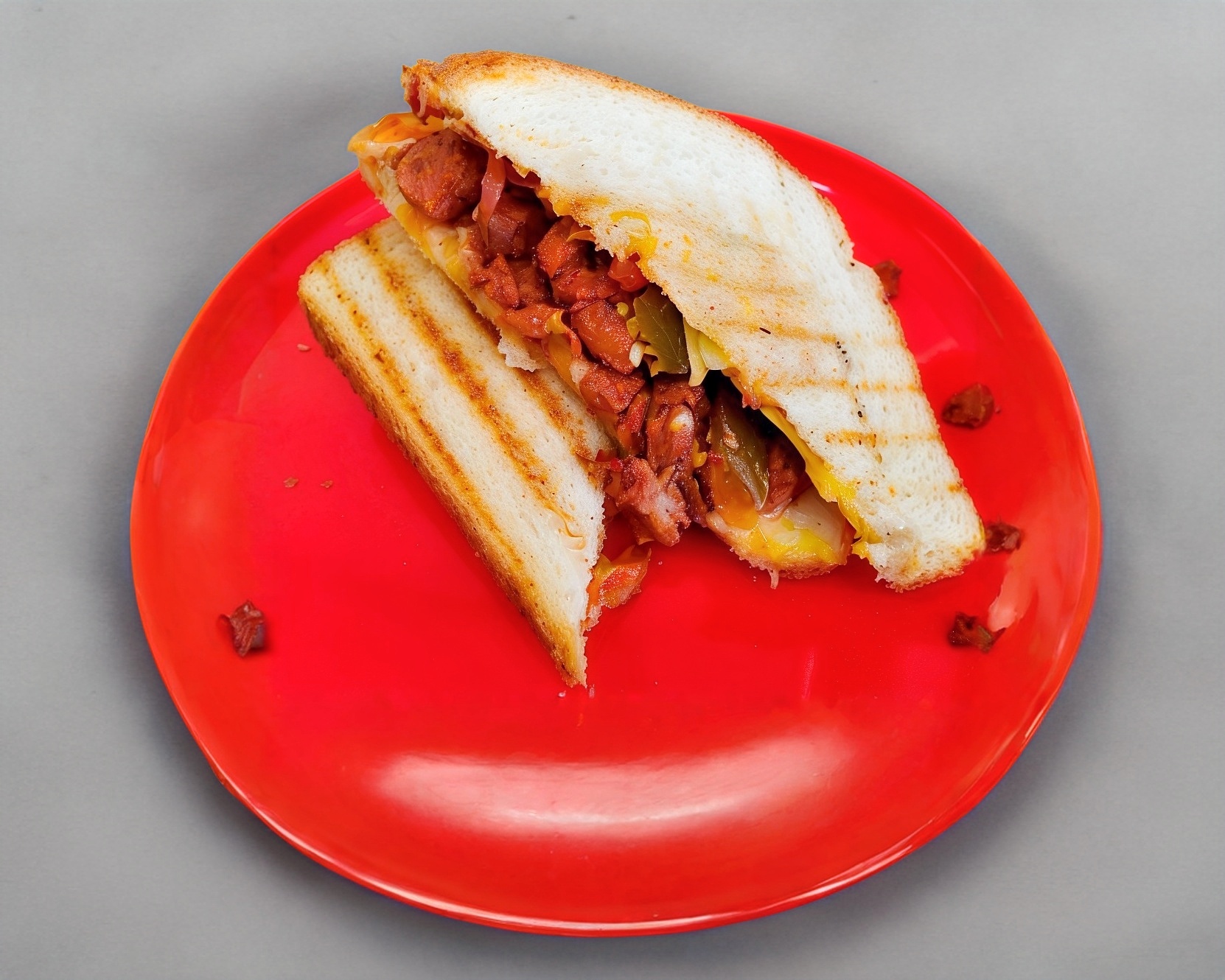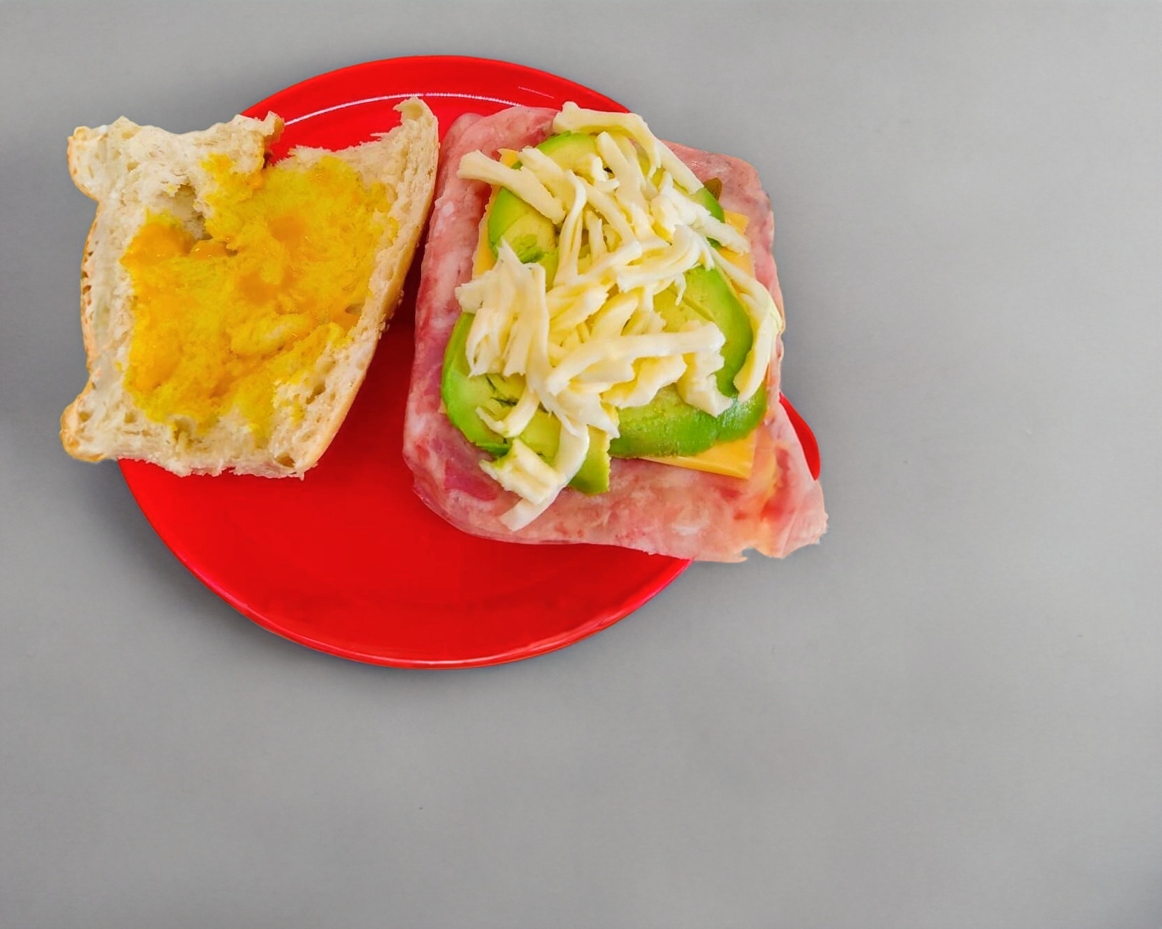 Aguacate, queso asadero, queso amarillo, jalapeño, mostaza, jitomate.