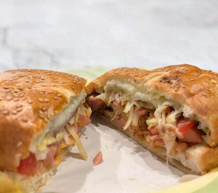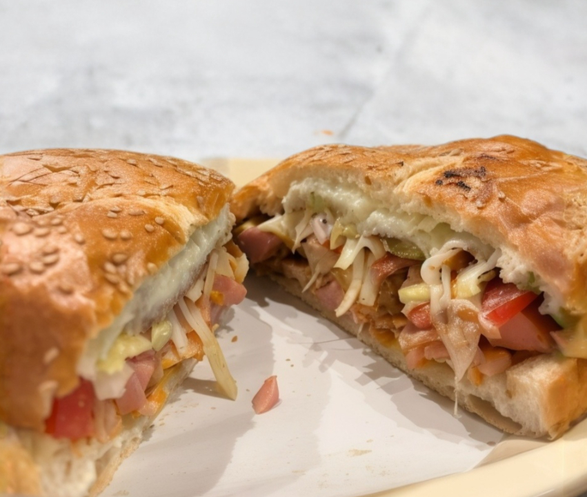 Jamón, queso puerco, queso blanco y queso amarillo. Una explosión de quesos en cada mordida.